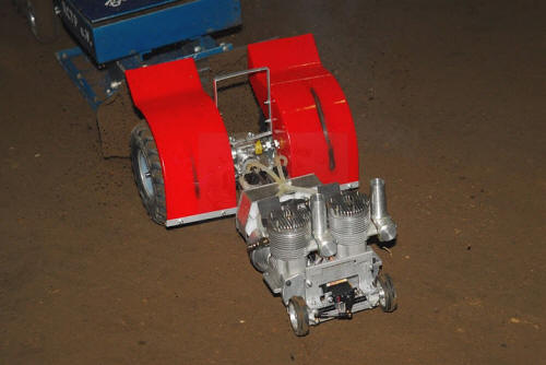 | H.J. Bliefert aus Meyenburg an der Oder hat sich mal wieder bei uns gemeldet. Einige werden sich erinnern, dass Hans-Joachim in der Saison 2003 und 2004 jeweils als Gaststarter beim Meisterschaftslauf in Bistensee dabei war. Sein damaliges Modell Blue Angel mit 2 OS Motoren gibt es heute immernoch. Hinzugekommen sind zwei interessante Kreationen. Ein Tractor für die Freie Klasse 5,5kg mit einem gewaltigen Zweitakt-Boxermotor. Hier gibt es noch Probleme mit dem Gewicht. Das Fahrzeug läuft nach eigenen Angaben aber sehr gut. Außerdem gibt es noch einen nicht zu verachtenden Super Stock mit einem OS-Kompressormotor. Hier ist Hans-Joachim noch mit den letzten Feinheiten beschäftigt. Wir werden aber mit großer Sicherheit alle Fahrzeuge nächstes Jahr auf der Bahn sehen, wenn H.J. bei einem der "Nord-Läufe" als Gaststarter vor die Kette geht. | |